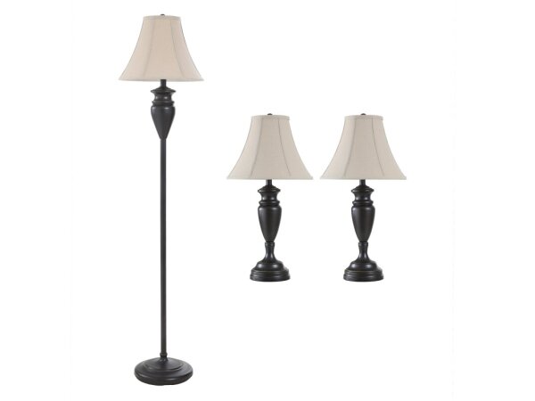 Qb-dunbrook Steel Multi Pack Set Includes 2 Table Lamps Floor Lamp Natural Linen Shades