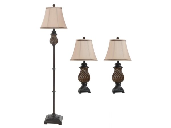 Qb-toffee Wood Multi Pack Set Includes 2 Table Lamps Floor Lamp Natural Linen Shades