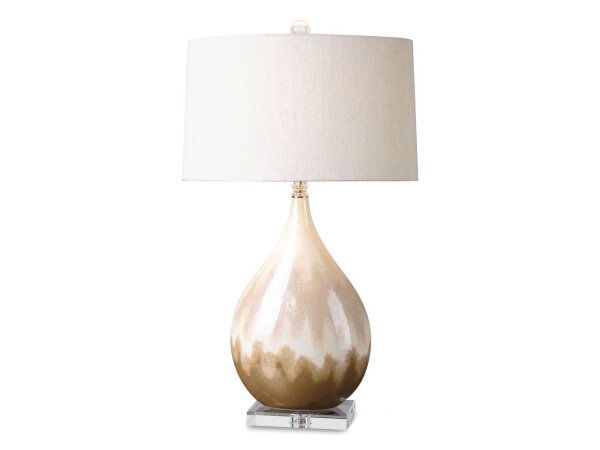Ceramic base finished in a metallic rust beige glaze with ivory undertones, paired with crystal accents and polished nickel details.