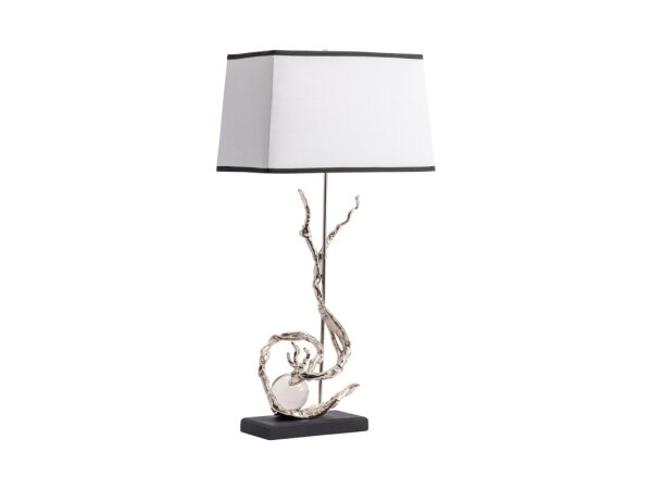 The Coral Table Lamp by The Crestview Collection stands 34-inches high, including the silver coral finial above the white linen