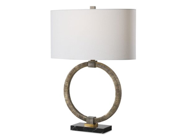 The Crestview Collection’s Amelia Table Lamp has a striking gold and blue, tiger ombre finish in transitional style. The piece