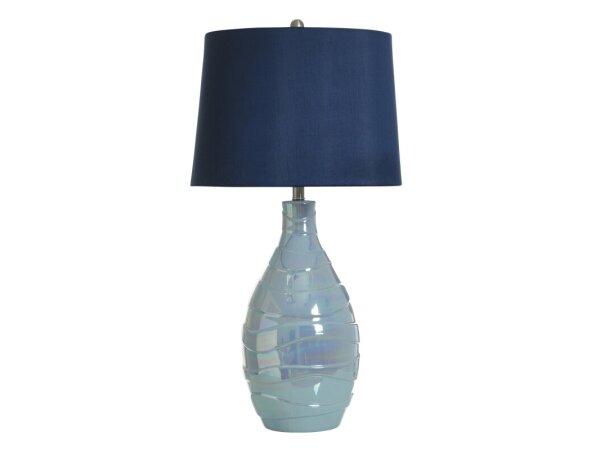 Norman Wyatt Home Crest Pearlescent Blue Ceramic Table Lamp 33in