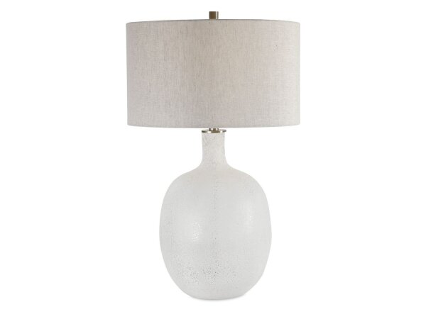 Beautiful and functional, this table lamp features a glass base finished in a heavily textured, mottled aged white, accented by