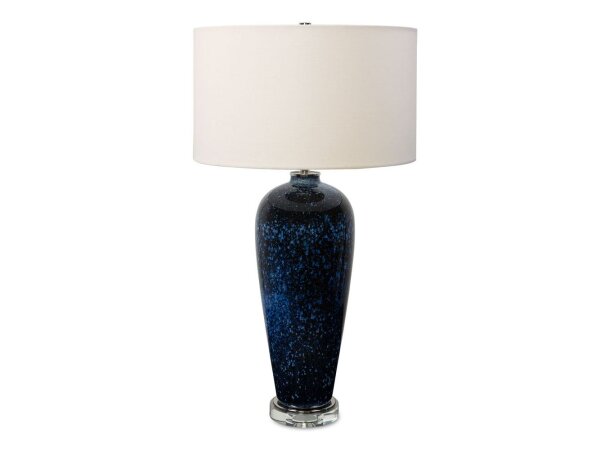 Reminiscent of the evening sky, this beautiful table lamp features an art glass base with shades of navy, cobalt and