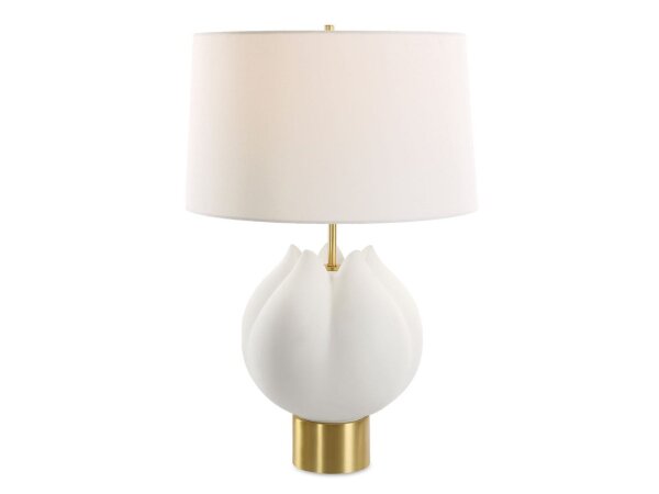 Inspired by budding flowers, the In Bloom Table Lamp features a porcelain body with subtle texture, finished in a chalk