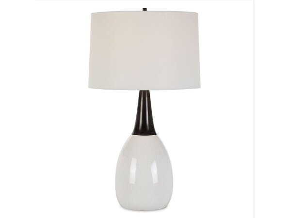 This unique table lamp seamlessly blends elegance and uniqueness into one captivating design. The crackled white ceramic base flows gracefully