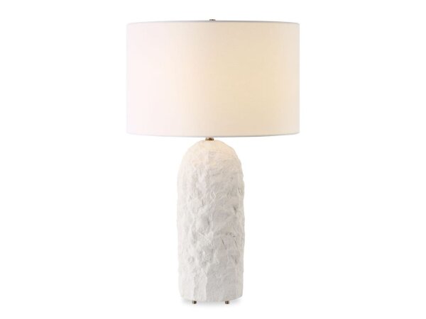 The Vieste Table Lamp is elegantly poised and organically textured with a white sandstone base, this piece exudes sophistication with
