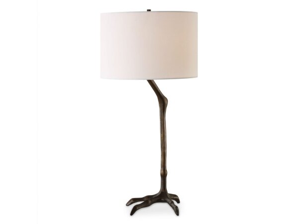 This unique table lamp combines nature-inspired elegance with a touch of whimsy, featuring a slender, cast iron bird-leg silhouette that