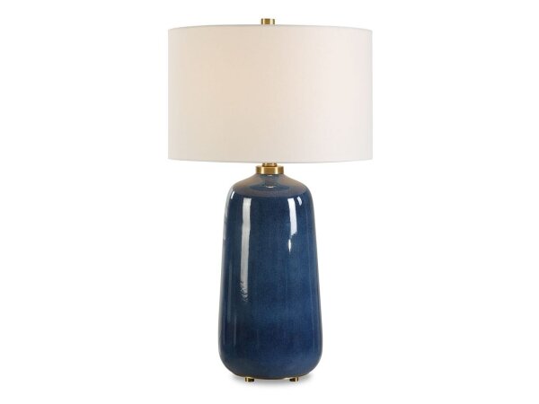 A stunning statement piece, the Brae Table Lamp features a deep blue glazed ceramic base accented with brass plated details.