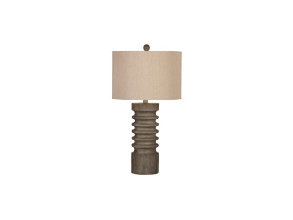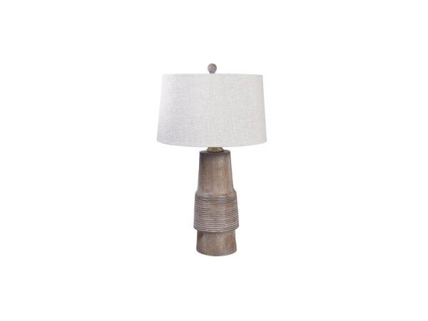 Ridged resin table lamp with a gray-wash finish that brings a natural, elemental feel; bulb included.