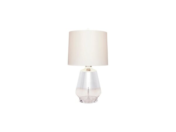 Clear glass body with a cascading reflective silver finish forms a subtle ombre effect for a refined, modern table lamp.
