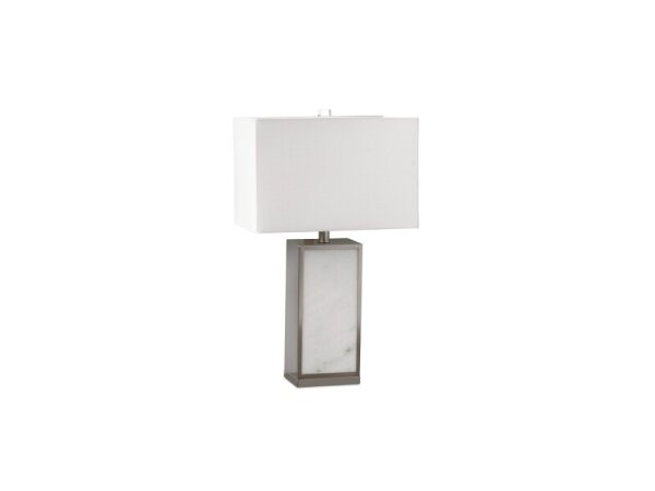 Table lamp with a clean rectangular base in a marble finish framed by brushed steel. 26 in. tall; bulb included.