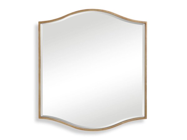 Showcasing a refined traditional style, this square mirror features a classic brushed gold finish with curved beveled mirrors. Group multiple