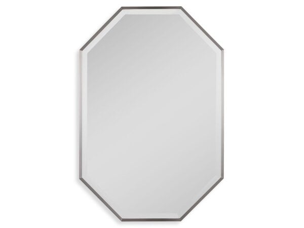 This traditional style vanity mirror takes on a more updated sleek look featuring a simple octagon shape with a petite