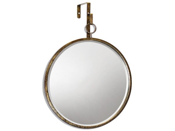 Haile Mirror- Round | Antique Gold Finish On Metal Frame | Plain Glass Beveled Mirror