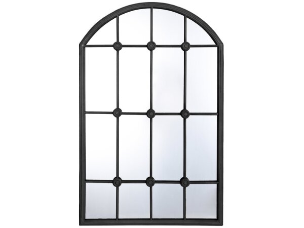 Pinewood Window Shaped Wooden Mirror With Metal Pane Detail