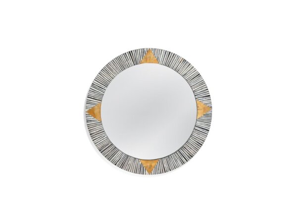 Square wall mirror framed with natural and cream bone pieces accented by brass for artisanal texture. Ethically sourced materials and hand‑applied details make each piece unique.
