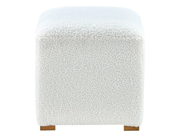 Basil Ottoman – a luxurious addition to any space. Featuring soft white faux shearling fabric paired with elegant wood legs,