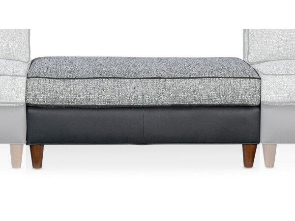 Leather accent ottoman with tapered legs and a laminated hardwood frame in transitional style. Offers optional cone legs, nailhead trim, and multiple finish choices.