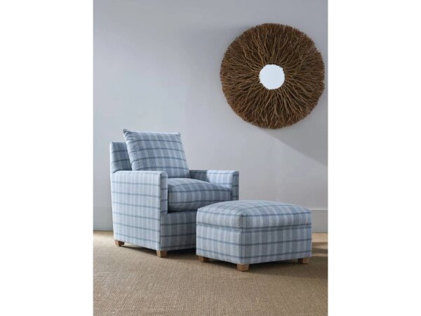 Square leather ottoman with a tailored flange seam and low round legs offers a refined footrest or extra seating. 40 in. W x 40 in. D x 17 in. H anchors larger living rooms.