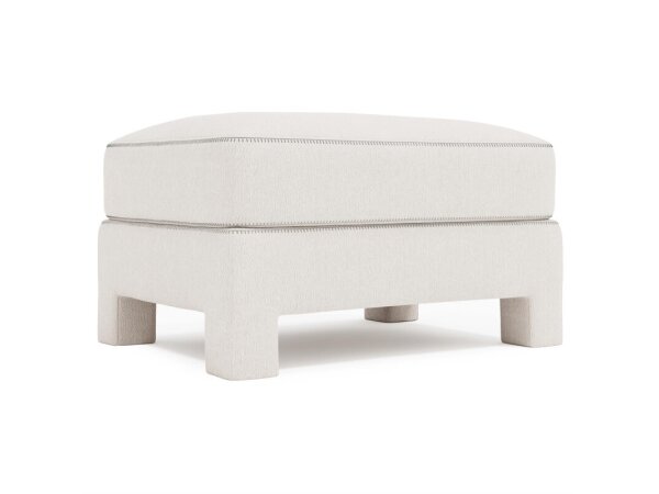 Soft and inviting, this versatile cocktail ottoman is fully upholstered in natural fabric with special contrast stitching.