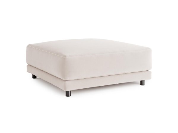 Modern style meets luxurious comfort in this plush ottoman with a quiet, inviting charm.