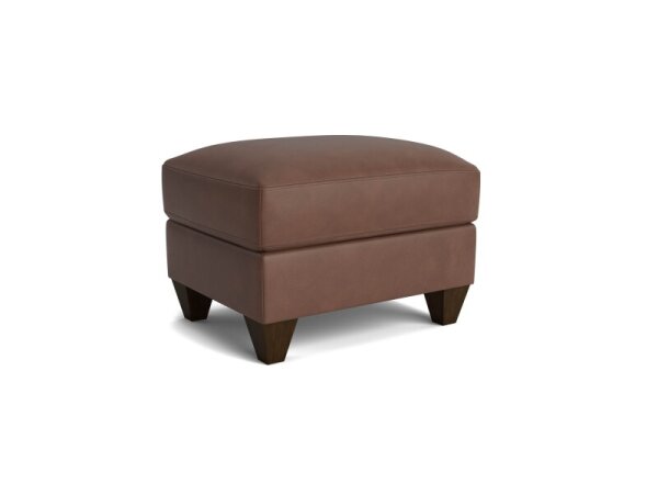 Leather ottoman that complements fabric or leather seating and flexes as a seat, serving surface, or footrest. Customize with your choice of leather.