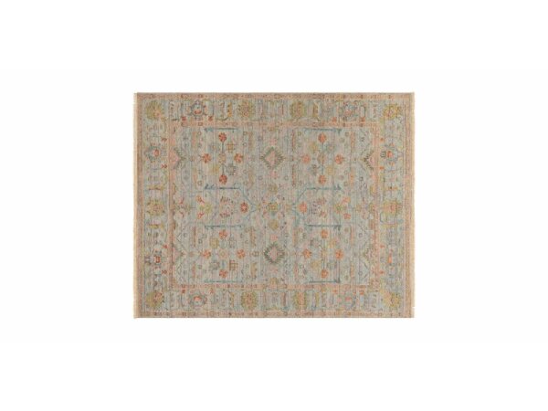 Hand-knotted New Zealand wool rug with a low pile for easy care, finished with fringe for traditional character. Crafted in India; rug pad recommended.