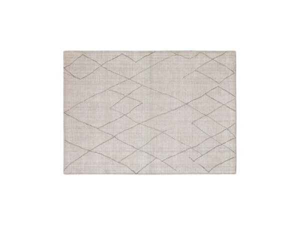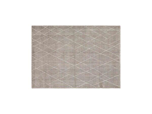 Versatile area rug with a neutral palette, crafted from a viscose–wool–polyester blend and patterned to complement casual or traditional décor.