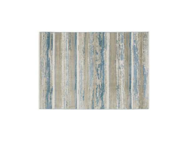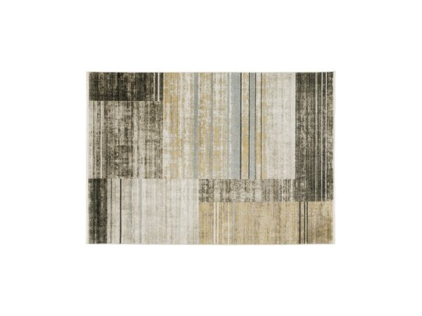 Power-loomed area rug made from 100% recycled PET yarn for a wool-like look with less shedding and easier cleaning. A multi-level, dense pile and warm neutrals suit rustic or modern decor.