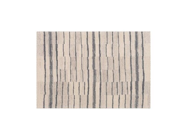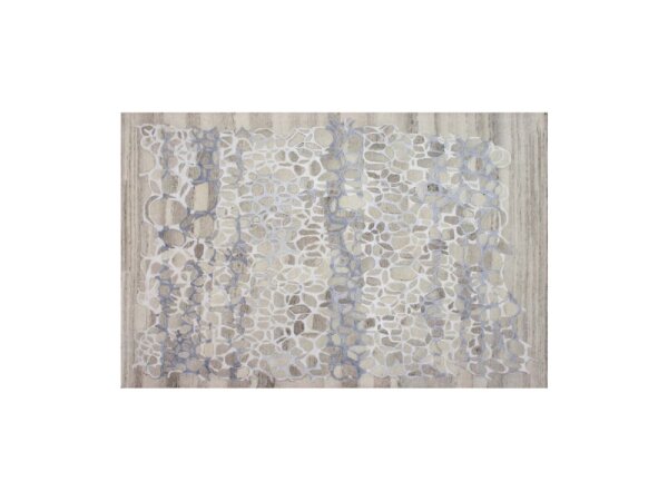 Hand-tufted wool and viscose area rug with a river rock-inspired pattern in light gray and blue, made in India for transitional or modern spaces. Rug pad recommended.