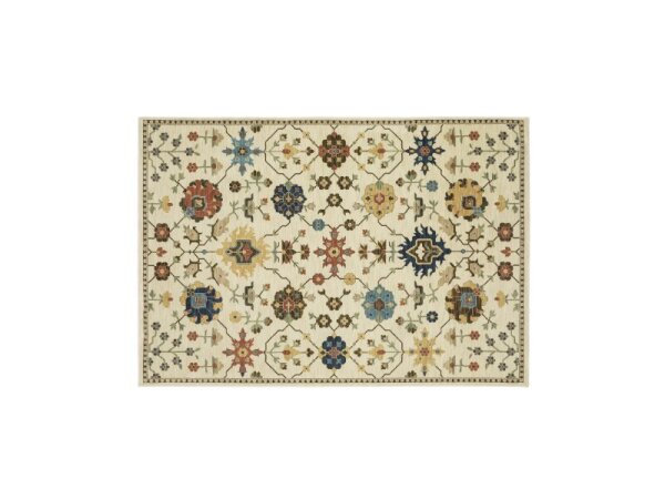 Power-loomed polypropylene area rug with space-dyed yarns for a soft feel, showcasing updated traditional patterns in softened jewel tones and nature-inspired neutrals. Rug pad recommended.