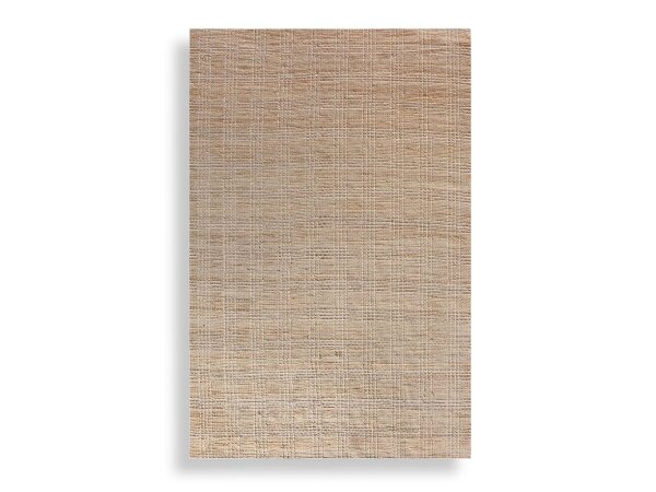 The Baxton Rug features a hand woven construction using beige wool paired with natural twisted jute, creating a linear pattern
