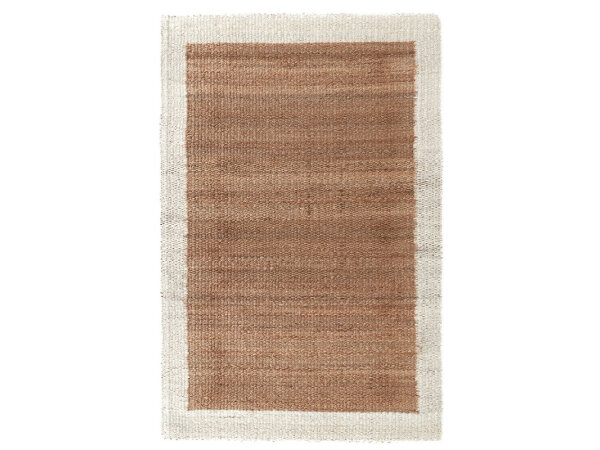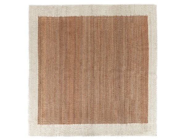Handwoven from two-toned jute fibers, this rug offers an eco-friendly version of a traditional rug pattern. The ivory border creates
