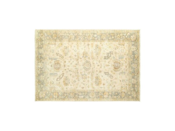 Hand-knotted wool area rug with traditional Oushak patterns in modern, classic colors; 120 x 168 in.