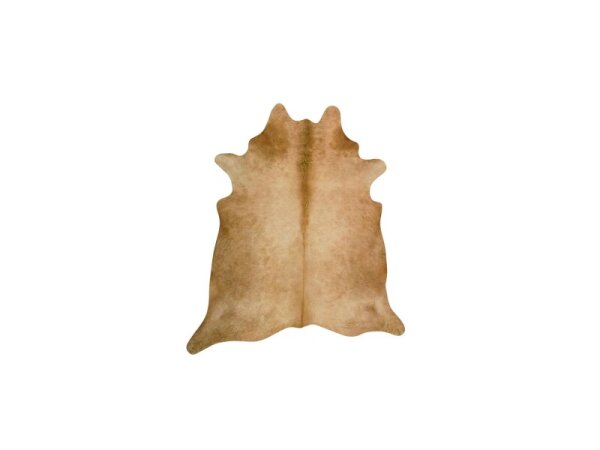 Genuine cowhide area rug in neutral beige, cream, and light brown adds natural texture and warmth; each hide features unique markings. Made in Brazil; rug pad recommended.