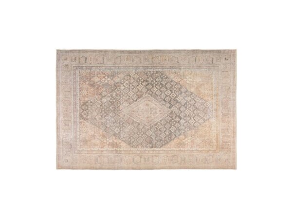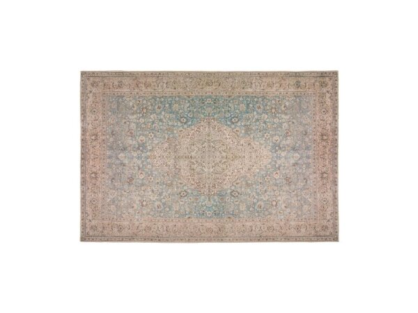Heirloom-inspired flat-weave area rug with intricate patterning and a built-in non-skid backing for stability. 100% polyester pile, easy care; made in Turkey.