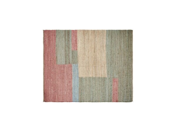 Area rug crafted using traditional handloom techniques with hearty double-ply jute for rich texture, and a bold color-blocked pattern for a modern look.