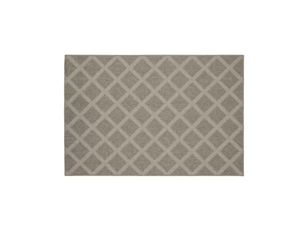 Power-loomed polypropylene area rug with a seagrass/sisal look in warm gray tones and a soft hand. Repels spills and cleans easily, suitable for high-traffic, family spaces.