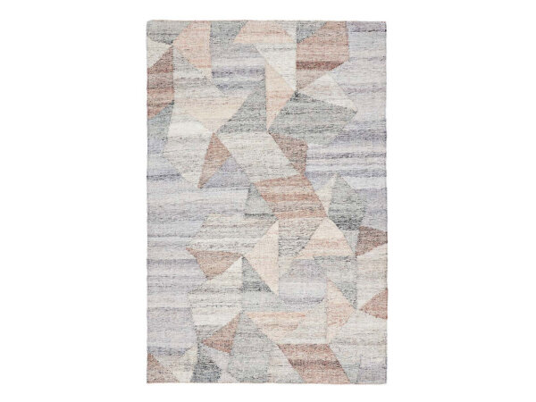 Modern and abstract, this geometric rug combines sandy tones and cool blue-gray hues for a versatile yet stylish look. The