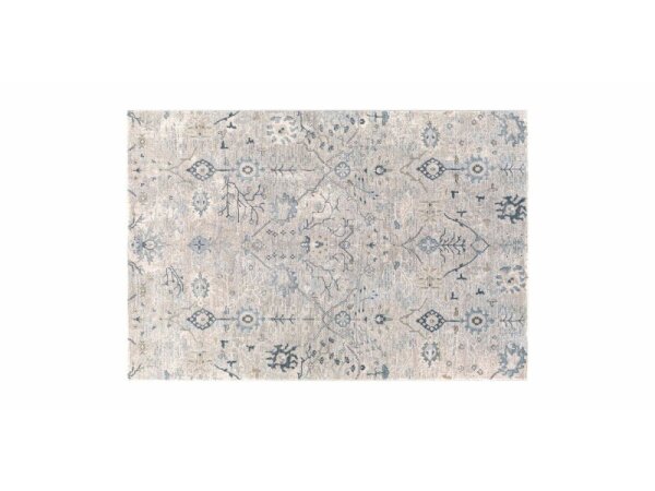 Updated traditional area rug made in Turkey from a durable polypropylene and polyester blend, suitable for high-traffic spaces. Medium pile with fringe adds soft texture.
