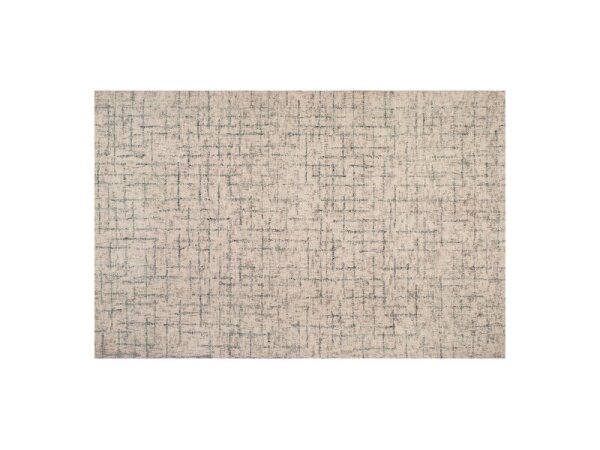 Hand-tufted wool-viscose area rug with geometric lines and a neutral palette accented by teal, hand-sheared for texture. 138 x 204 in.; rug pad recommended.
