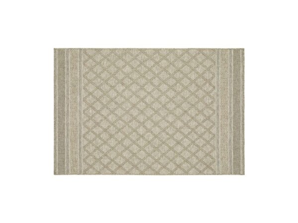 Power-loomed indoor/outdoor rug of 100% polypropylene with a textural, multi-level weave that gives the look of high-end wool. Global-inspired, multi-tonal neutrals are easy-care and add dimension.