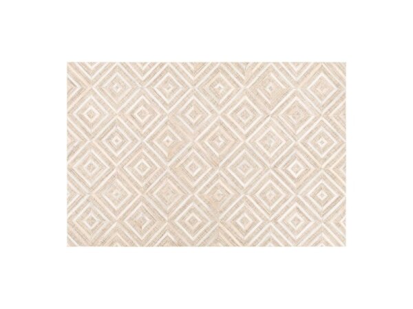 Meticulously woven patterned area rug made of wool and leather with no pile for a clean, modern look. 24 x 36 in.