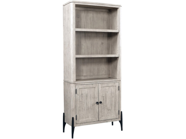 Tuxedo-black pecan veneer bookcase with two doors, adjustable shelves, and an integrated puck light with touch switch. Includes anti-tip hardware for added safety.