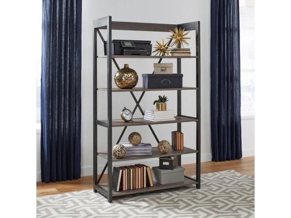 The Tanners Creek file cabinet, made from a rubberwood solid frame and scratch-resistant melamine, features a greystone finish. It includes three full extension drawers, a locking lateral file drawer for secure document storage, and mobile casters for eas