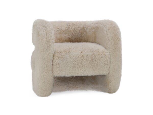 The Teddy Plush Accent Chair features soft faux fur upholstery and Pirelli webbing, offering both comfort and durability. Its modern