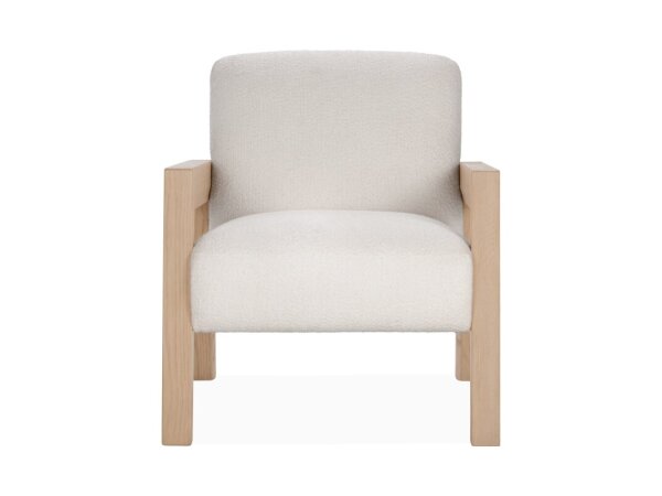 Unwind in style with the Aliza Accent Chair. Its boucle fabric, oak wood frame, and open-arm design offer a perfect