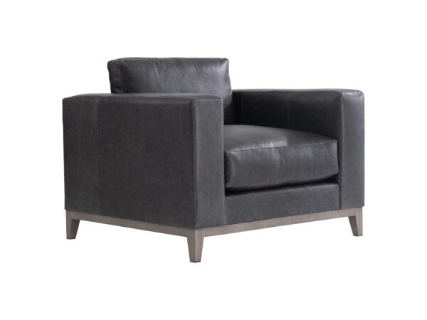 Designed with deep, plush seating and upholstered in soft leather, this chic chair is luxurious and inviting.