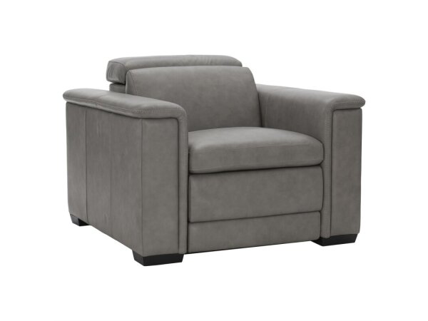Leather power wall recliner with zero‑gravity positioning for supportive comfort and a space‑saving wall‑hugger design. Features an adjustable headrest and USB charging.